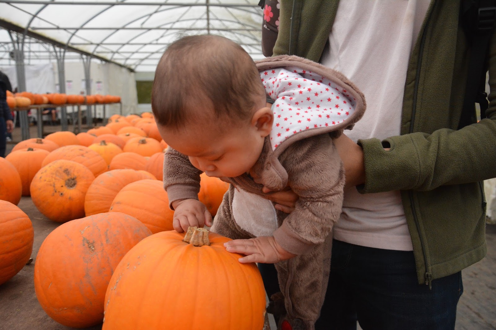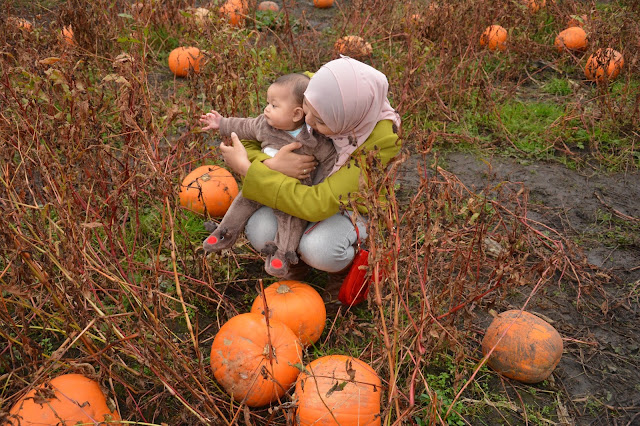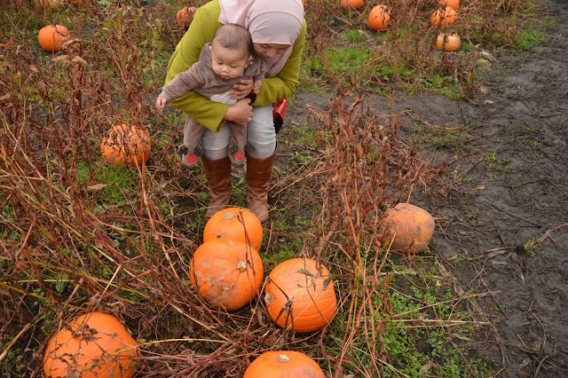 So, lets get back to the actual fundamental of this entry. It was on the Halloween Eve last week that my husband and I brought our little Moose to the pumpkin farm, near Warrington. The journey took only half hour by train ride from Liverpool. Been living for almost 5 years in the UK (for me) and almost 7 years abroad for my husband (because he was in United States before he furthered his studies in UK), we both actually never been to any pumpkin farm before. What a shamed, I know but it was all started when we held the Mother and Father title. Parenthood really kicking in.